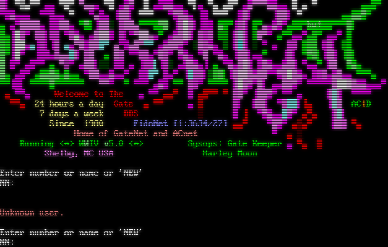 Client Address: 1984.ws (64.227.40.173) WWIV 5.3.1.2740 Copyright (c) 1998-2017, WWIV Software Services. All Rights Reserved. ▄ ▄ ▄ ▄ ▄ ▄ ▄ ▄▄ ▀▄▄▄▄▄ ▄▄▀▀ ▄▄ ▄█▀ ▄▌ ▄▄▀▄ ▀▄ ▀▄▄▄ ▐▄▀ ▄▄▀ ▄ ▀▀▄▄▄█▀▀▄▄▀ ▄▄▄ ▀▀▄▄ ▐█▌ ▓▌ ▀▒▄▀▀ ▄▄ ▀▓▀ ▀▄▄▄ ▀▓ ▄▄▀ ▓ ▄█▄▄▄▄ ▀▌▄ ▀▄ ▄█▀ ▄▄▀▀▀▄▄▄▄ ▓ ▄ ▀▄▄█▀ ▀█▄▄▄▄ ▀▀░▄▄ ▀ ▀▄█▄ ▐██▌ ▀▀▀ ▀▀█▄▄ ▐█ ▀▀▀ ██▌ ▐██▌ ▀ ▄▄▄▄▀▀ ▄ ▄▀████▄ ░░██▄ ▀▀▌▐██░ ▓██▄▀▀▀█▀█ ▐███▌▐░█ ▄█▀▐▓▌ █▀▄▄▄▀▀▄██▀bw!██▀▀▀▓▌ ░▄▐▓▓▀ ▓▓▌▒▒ ▀▓▄▄ ▄█▒▒█ ▒▌▀▀▒▒▄▄▀ ▄▄█▒▌ ▓▒▓ ▓▓ ▐▒▌ ▓█▀▀ ▄▀▀▄▄▀▄░▀ ▄▄▀ █ ▒░▐▓█▄▄▐▒▌▐▓ ▄▄▀█████▀ ▄▀█▄█▀▀▀ ▄▄██▀▀ ░█▓▄▄ ▒ ▐▓▌ ░ ▀ ▄ ▒▒ █▒▒ ░▓▌ ▓█ ▓▀▐█▀ ▐░░▄▓▄▄█▌ ░█ ▄ █▓ ▀▀▓▓▄▀█▓▀ ▀▄▄ ▀█ ▀▄▄ ▐██▌▄▄▀ ▐▓▌ ▀▀▓▌▐█▌ ▐▒▌ █ █▀ ▄█▀▀ ▄ ▀▒▀ ▄██▌░░ ░░ ▄ ▐▒▒▌▐▒░ ▄▐█▄▄▐ ▄ ▀▄▄█▒▌ ░█▄▄▄▄█▌ ▀▄▄▀ ▐█ ▀▄▄ █▄ ▄█▀ ▄▄▄█▄▄▄▄▄ ▀██▄▄▄▄▄▀ ░░█▀ ░▄▀ ▐█▓▓▌▒▒▓▌▐█▒▒█▄██▀▀▀█▓█▄▄ ░▒▓▄▄█▄▄ ▀▀▀▄ ▀▀▐█▌ ▀▀▀▀▀▀▀▀▀▀▀ ▀▀▀ ▀ ▀▀▀ ▄▄█ ▀▀ ▓▒▀ ▀▀▀▀ ▐██▀▀█▌ ▄▄██▀▀ ▀▀▀▀▀█▓▓▒█▄▄▄▄▄▀ ▄ ▀▀▄Welcome to The ▄ ▀▀ ▄▄▀ ░ ▄█▀▀ ▀ ▓█▀ ▐██▀▀ ▀▀ ▄▐▓▌ ▀▀▀▀ ▀▀▄ 24 hours a day Gate ▄ ▀▀▄ ▓▒▌ ▐█▌ ▀▓██▌▐▄ ▐▓█ ACiD 7 days a week BBS░░ ▐ ▀▀▄▄▄█▀▀ ▄▀▄ ▐▓▌ Since 1980FidoNet [1:3634/27] ▄▄▀ ▀█▀▀ ▄▒▄▀ ▐█▓ ▀▄ Home of GateNet and ACnet▀ ▄ ░ Running <\*> WWIV v5.0 <\*>Sysops: Gate Keeper ▄ ▀▄ ▓ Shelby, NC USA Harley Moon Enter number or name or 'NEW' NN: Unknown user. Enter number or name or 'NEW' NN: