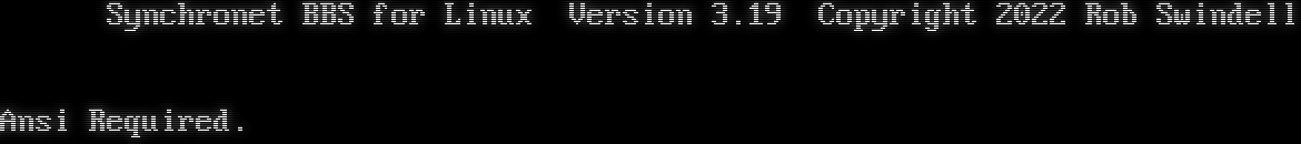 Synchronet BBS for Linux Version 3.19 Telnet connection from: 64.227.40.173 Resolving hostname... _ _ Synchronet BBS for Linux Version 3.19 Copyright 2022 Rob Swindell Ansi Required.