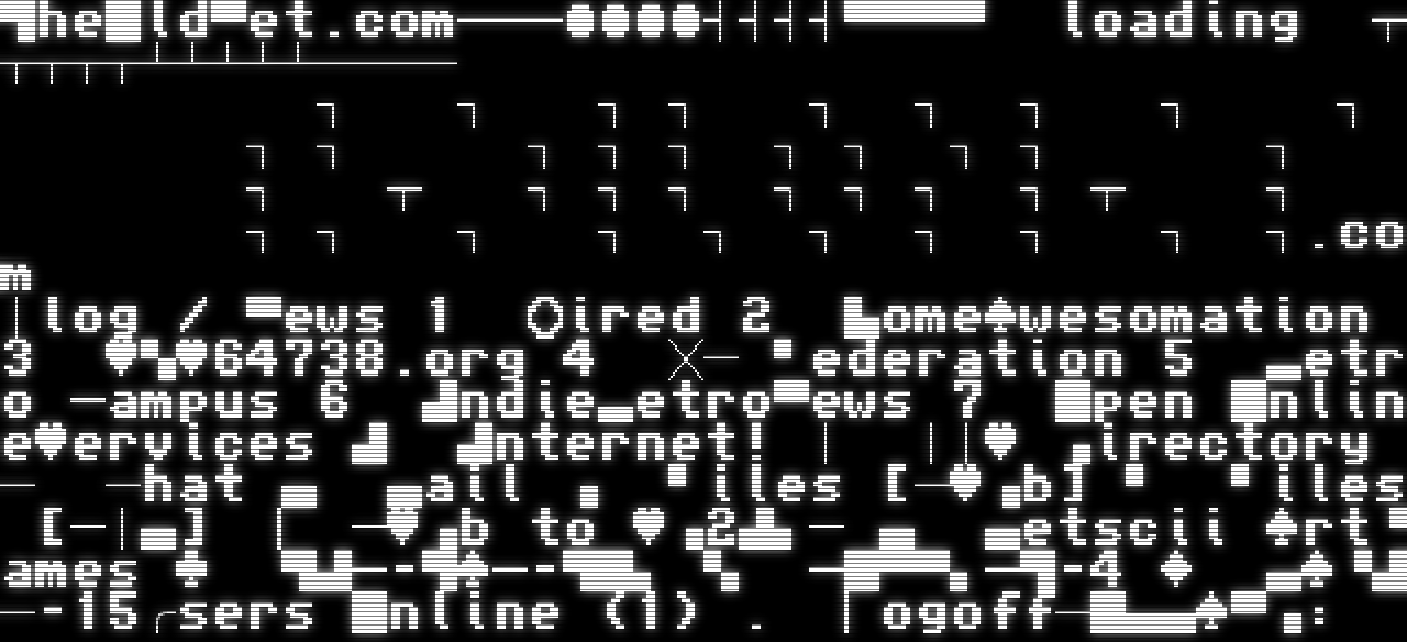 ▜he█ld▀et.com───••••┤┤┤┤▀▀▀▀ loading ┬┬┬┬┬┴┴┴┴┴──── ┐ ┐ ┐ ┐ ┐ ┐ ┐ ┐ ┐ ┐ ┐ ┐ ┐ ┐ ┐ ┐ ┐ ┐ ┐ ┐ ┬ ┐ ┐ ┐ ┐ ┐ ┐ ┐ ┬ ┐ ┐ ┐ ┐ ┐ ┐ ┐ ┐ ┐ ┐ ┐.com │log / ▀ews 1 ○ired 2 ▙ome♠wesomation 3 ♥▚♥64738.org 4 ╳─ ▘ederation 5 ▃etro ─ampus 6 ▟ndie▃etro▀ews 7 █pen █nline♥ervices ▟ ▟nternet! │ ││♥ ▗irectory ─ ─hat ▄ ▄ail ▗ ▘iles [─♥▗b] ▘ ▘iles [─│▄] ▕ ─♥▗b to ♥▗2▟▖─ ▄ ▄etscii ♠rt▝ames ♣ ▜▟─-▜♠─-▜█▖ ▚ ─█▀▀▖─▜-4 ♦ ▄♠▝▟─-15╭sers █nline (1) . ▏ogoff─█▄▄♠▀▗: