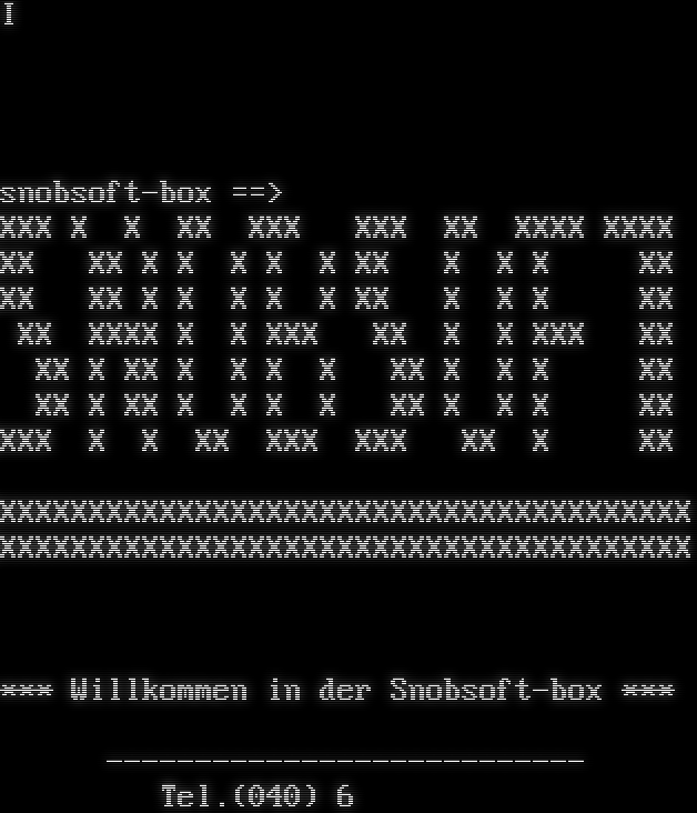 I snobsoft-box ==> XXX X X XX XXX XXX XX XXXX XXXX XX XX X X X X X XX X X X XX XX XX X X X X X XX X X X XX XX XXXX X X XXX XX X X XXX XX XX X XX X X X X XX X X X XX XX X XX X X X X XX X X X XX XXX X X XX XXX XXX XX X XX XXXXXXXXXXXXXXXXXXXXXXXXXXXXXXXXXXXXXXX XXXXXXXXXXXXXXXXXXXXXXXXXXXXXXXXXXXXXXX \*\*\* Willkommen in der Snobsoft-box \*\*\* -​-------------------------- Tel.(040) 6