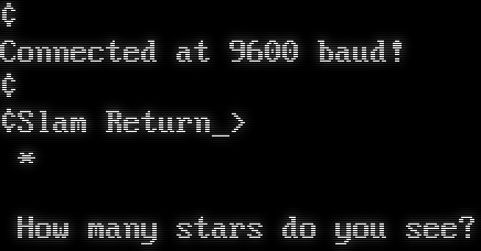 ¢ Connected at 9600 baud! ¢ ¢Slam Return_> \* \* How many stars do you see?