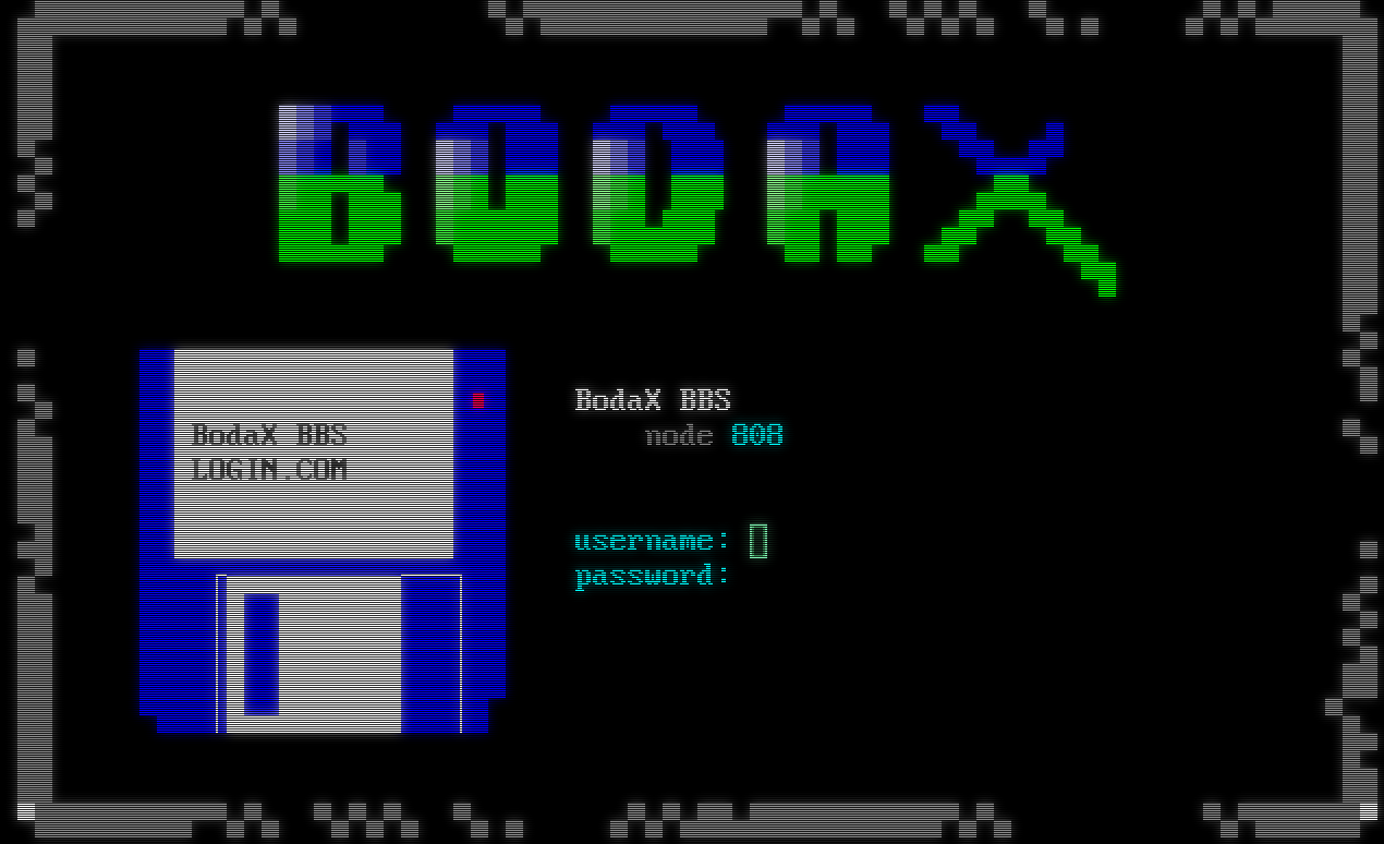 Detecting client features... Connected to ENiGMA½ BBS version 0.0.14-beta Copyright (c) 2014-2024 Bryan Ashby - http://l33t.codes/ Updates & source - https://github.com/NuSkooler/enigma-bbs/ ▄███████████▀▄▀▄ ▀▄▀█████████████▀▀▄▀▄ ▀▄▀▄▀▄ ▀▄ ▄ ▄▀▄▀▄█████▄ ██ ██ ██ ██ ██ ▓▒░▀██▄ ▄▓▒▀██▄ ▄▓▒▀██▄ ▄▓▒▀██▄ ▀█▄ ▄ ██ ▀▄ ▒░ ░██ ▓▒░ ███ ▓▒░ ▐██▌ ▓▒░ ▀█▄▄█▀ ██ ▀▄ ░ ▀██▄ ▒░█ ▒██ ▒░█ ▐██▌ ▒░█████ ▄██▄ ██ ▀ ███ ░██████ ░██▄███ ░██ ███ ▄█▀ ▀█▄ ██ ▀▀▀▀▀▀ ▀▀▀▀▀ ▀▀▀▀▀ ▀▀ ▀▀ ▀▀ ▀█▄ ██ ▀ ██ ▀▄ ▀ ███ █████ ▀▄ ▀▄ ███ ████■█ ▀ █▄ ███BodaX BBS█████████ node ▀▄ ██ ███MATRIX.COM████████ ██ ███PLEASE USE SSH████ ▄█ ███INSTEAD!██████████ ▄ ▄▀ ┌▄▄▄▄▄▄▄▄▄▄───┐ ▄ ██ │█ ███████ │ ▀▄ ██ │█ ███████ │ ▀▄ ██ │█ ███████ │ ██ ██ ▀ │█▄▄███████ │ ▀▄ ██ █▀ ██ ██ ▄█████████▀▀▄▀▄ ▀▄▀▄▀▄ ▀▄ ▄ ▄▀▄▀▄██▄███████████▀▄▀▄ ▀▄▀██████▄LOGIN apply forgot pass log off BodaX BBS808LOGIN apply forgot pass log off ▄███████████▀▄▀▄ ▀▄▀█████████████▀▀▄▀▄ ▀▄▀▄▀▄ ▀▄ ▄ ▄▀▄▀▄█████▄ ██ ██ ██ ██ ██ ▓▒░▀██▄ ▄▓▒▀██▄ ▄▓▒▀██▄ ▄▓▒▀██▄ ▀█▄ ▄ ██ ▀▄ ▒░ ░██ ▓▒░ ███ ▓▒░ ▐██▌ ▓▒░ ▀█▄▄█▀ ██ ▀▄ ░ ▀██▄ ▒░█ ▒██ ▒░█ ▐██▌ ▒░█████ ▄██▄ ██ ▀ ███ ░██████ ░██▄███ ░██ ███ ▄█▀ ▀█▄ ██ ▀▀▀▀▀▀ ▀▀▀▀▀ ▀▀▀▀▀ ▀▀ ▀▀ ▀▀ ▀█▄ ██ ▀ ██ ▀▄ ▀ ███ █████ ▀▄ ▀▄ ███ ████■█ ▀ █▄ ███BodaX BBS█████████ node ▀▄ ██ ███LOGIN.COM ████████ ██ ███ ██████ ▄█ ███ ██████ username: ▄ ▄▀ ┌▄▄▄▄▄▄▄▄▄▄───┐ password: ▄ ██ │█ ███████ │ ▀▄ ██ │█ ███████ │ ▀▄ ██ │█ ███████ │ ██ ██ ▀ │█▄▄███████ │ ▀▄ ██ █▀ ██ ██ ▄█████████▀▀▄▀▄ ▀▄▀▄▀▄ ▀▄ ▄ ▄▀▄▀▄██▄███████████▀▄▀▄ ▀▄▀██████▄ BodaX BBS808