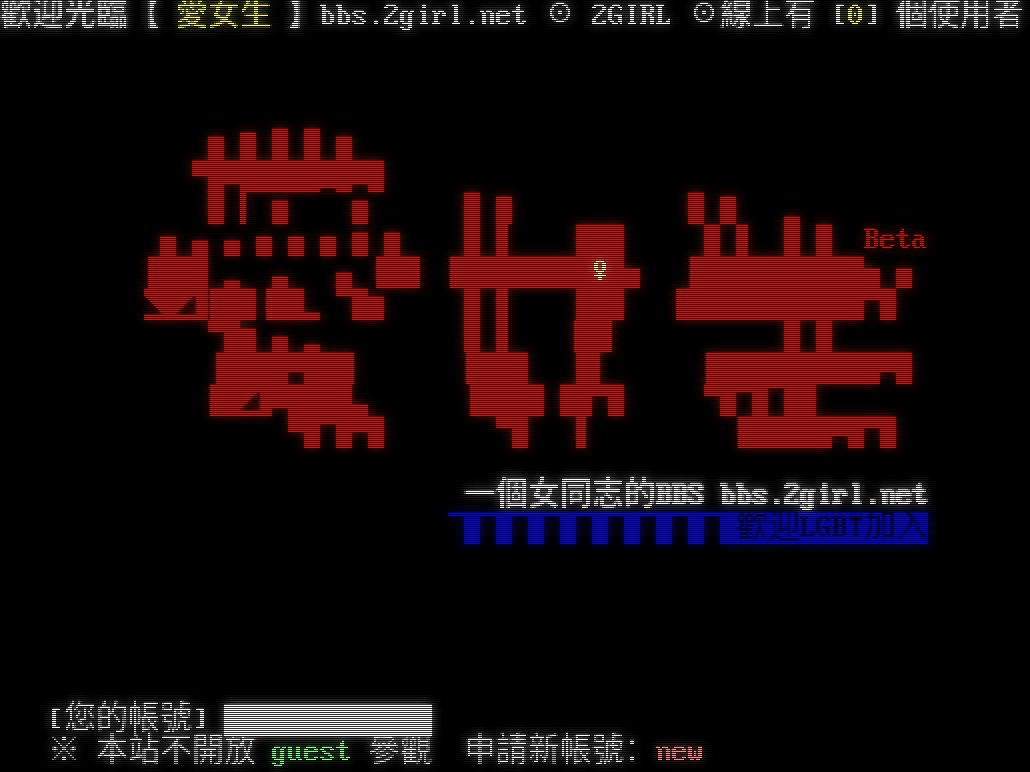 歡迎光臨【 愛女生 】bbs.2girl.net ☉ 2GIRL ☉線上有 [0] 個使用者 ▆▇██▆ ▄▂ ▁▂ █▍▆ ▆ █▇ █▇ ▂ ▅▄▄▅▅▅▆▆ █▊ █▊ ██ Beta ▎ ▂ ▃ ▄▌ ▎▏ ♀▅ ▏ ♀ x ▆▅▅ ◣◢▏ ▋ ▂▆▆ █▊ ▎ ♀ ▅ ▅▆▄▂ █▊ ▉ ▎ █ ▌ ▃ ▏ ▏▊ ▌ ▏ ▃ ▏◢▂ ▃ ▍▊█▃▅ ▅▆▇█ ▄▆▄ ▅ ▋ ▏ ▃▅ 一個女同志的BBS bbs.2girl.net ▇▇▇▇▇▇▇▇▇歡迎LGBT加入 [您的帳號] ※ 本站不開放 guest 參觀 申請新帳號:new