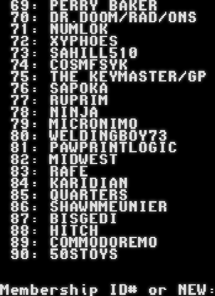▙▟▝▙ ▗▖♥▖▃▜ ││♥ ▄▃▖♥♥ ▚█╭▃ ▗▖▏▖▜▖/│♠─▕♥▄♠─▖ ▕▖▚! Commodore Graphics!  . ┤ . • . ┴▆▆╲ • ┴┤▆┬. . •▄┌┌╰╲╲▀▆ ┤╲▆ ▄╲█ ▆▄╲•▆▀┤╲┤▆┤┤ ┤─┤ ╲ •█┌ ─┐┐▄▄▄▄ ┐─ ╰│─▀╰▄▆─▀ ┐▆▅╲ ▆ █▅╳┌│ •▄▅█▄ ─█─. ─▀ ▆─▀ ─╰╲ ┐█╲▄┌│ ▆╱▄▄▄. ╲─▆│ ─█ ▅ ▄█ ─ ▅▆▄▄┌ ─┐▄╱▄▄▄ ┌│┌│ ▀▄▆┐╱▀▄─▆┌ . ▄▄▄╰▀▅ ╲▅█▅█ ╰││╲▂▄▅┤█▆╲▅┤█┤╰ .▄┌┌ ▆▀▀ ▀▀ ╲▀ ▀▀ ▆▅▀╲ ─██ ▀ ┌▂ ┌▂ ▆█▅▀▀┴ ┴┴ ▆▆ ▆▆▆▀ . │┌ │┌▀▄▄ ┤• . . ▀▀█▀▀█▅▀ ▀ ─ ▀ ▏ancaster, ─♠ █ ╲ ╰─▆ . ♥▚♥█▄: ▝eo455 . █ ┐ ┴ ╰ █ ─ ┌ 2400 │▄♥ ╲ ▅ . ─ • 24 ▙ours/7 ▗ays─ ▆ ▆ ╲ ▄ ╲ •── █ ▄█○▖▃▖▗ │▚ ╲▀─•╲ ╰ ─█▄▄█▗█▃▖! . ┤ ┌ ▆┬┬┬┬ ┤ ╲ 000000000000000000000000000 Membership ID# or NEW: Membership List The Membership list is manually updated daily. -​------------------------------ Membership list as of 03/06/26 2: GEO455 3: GURBYMURBLE 4: BCSCHMIDT 5: FENRISWOLF 6: MCPIERCE 7: BETTYRUBBLE 8: DIVARIN 9: ZEICHE 10: DELMOKO 11: RICK-T137 12: EAGLEWING 13: DASBRENNEN 14: SBNYC 15: NML32 16: JESTER 17: SHADOWKING 18: TIGGER 19: HAVOK 20: JVACHA 21: JALAPENOTE 22: CTHULHU 23: Z-BOY 24: KAMPEJ 25: XTOLID 26: SMITH 27: FOOBREW 28: IMAPENGUIN 29: CAPT KIRK 30: KHANN 31: M1KR0N 32: JB 33: DHESTERC64 34: BACKINTIME 35: WIZARDCASTICO 36: BLANK QUENTIN 37: NUKE 38: AROCKDASUPA 39: CLUWE 40: GYROCOPTER1980 41: CLUWEN 42: 12 43: MODEM MASTER 44: WARAN 45: ILAH 46: CLIVEFROG 47: WINTER 48: C4EVER 49: BUN 50: GNOME440 51: BATTERIESNOTINCLUDED 52: ARPI 53: TORONTO64C 54: GRAY81 55: BROKENROUTER 56: STUNTMANMIKE52 57: INSTAGIBBER 58: GLITCHYMENTAT 59: HERMMUSIC 60: BOARD RIDER 61: ZERKKEL 62: ADAM 63: KINGLJ 64: GELOTRONIC 65: CLYDE1992 66: DEAN THOMAS 67: PBMAGNET 68: DESERT-FOX 69: PERRY BAKER 70: DR.DOOM/RAD/ONS 71: NUMLOK 72: XYPHOES 73: SAHILL510 74: COSMFSYK 75: THE KEYMASTER/GP 76: SAPOKA 77: RUPRIM 78: NINJA 79: MICRONIMO 80: WELDINGBOY73 81: PAWPRINTLOGIC 82: MIDWEST 83: RAFE 84: KARIDIAN 85: QUARTERS 86: SHAWNMEUNIER 87: BISGEDI 88: HITCH 89: COMMODOREMO 90: 50STOYS Membership ID# or NEW: