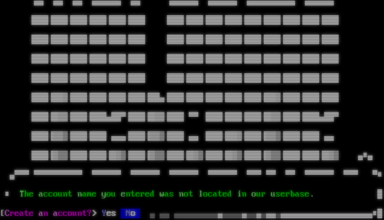 Mystic BBS v1.12 A43 for Raspberry Pi Node 1 Copyright (C) 1997-2019 By James Coyle Detecting terminal emulation: ANSI detected. [0] MS-DOS CP437 [1] UTF-8 Select Terminal Codepage [Enter = CP437]: 1 ▀▀▀▀▀▀▀ ▄▄▄▄█▓░ ▀▀▀▀ ▄▄▄▄▄▄ ▐▓▓▀▀▀▀ ░▓▓████░ ▀ ██▓ ▀▀▀▀░▒▄▄▄ ▀▓▀ ▄▄▄▄ ▄ ▓░ █▓░ ▓░▓▓█▌████▌▌ █▄▄▄█░▓██▓░▓ ▒▀ ▄░█░░ ░▓███▄▓████▓▄▒▄░█▓▄▐█▄█ ▄▄███▓▒░ ▓░ ▒▓ ▓░▄▄ ▒▓███▓░▐░▀▀▓██░░░░█▒ ▒▄█▒░ █ ▀▀▀▀▀▒▀▀▄▀██▒▀▄▄▄▄▀█▓▓█▌▓▓██▓▓▀▀ ▄▄▄▄▄▓▌ ▓█░▓▌ ░░░░ ▀▄░▄█▄▀▒▒▒▌▀▄ █▄▄░░ ▄ ▀▀▄██▄▄ ▄ ░█▓░▌ ▄▄ ▐░░█░█░░░▐▌ ▄ ▄▄█▓▀▀▀▄ █▀▄▀▄▌ ██ ░▀▀▀ ▐ ▒▄▄ ▀▀▀▀▀▓ ░█▒▄ ▀▄░▒░▄ ▌▒█░░▌▐▒▌██░▓▓▐█ ░█▒░▓█▓█▓▓▀▀▄ ▄█▀▀▒▒▄░▒▓▌▐▄▒▌ ░ ░░ ▐░▄▄▓▌▌▒ ░▓▌▐▀▀█ ▐▒▓██▌▒▄▄░▓█ ▀░▀▀▓▓█▌ ▀░▒▓▄ ▀ ░▒██▓██▄ ▀▀▐░▓▀ ▀▀▀ ▀▀ ▀▀▐█▓▌ ▀▀▀▀▀▀ ▀▀▀▀▀ ▄ ▄▄█▓▌▀▀ ▀▀▀▀ ▀▀▀ ▀▀gj! ▀▀▀ ▄ ▀ ░▓▒▒░ ─────────────────────────────────────────────────────────────────────────────── Welcome to the Mystic BBS Demonstration System ─────────────────────────────────────────────────────────────────────────────── [■] Enter your user name: ┌─────────────────────────────────────────────────────────────────────────────┐ │ ▒ Welcome to Mystic BBS Demo System │ └─────────────────────────────────────────────────────────────────────────────┘ The account name you entered was not located in our account database. If you wish to create a new account, answer YES below to continue on to the new account application. If you've mistyped your account name, answer NO and you will be returned to the login prompt. Create an account with this BBS? Yes No