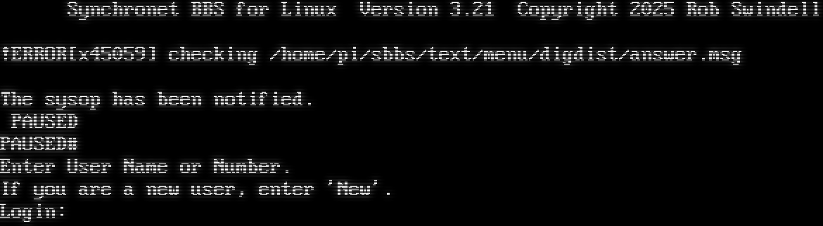 Synchronet BBS for Linux Version 3.21 Telnet connection from: 64.227.40.173 Resolving hostname... _ _ Synchronet BBS for Linux Version 3.21 Copyright 2025 Rob Swindell  !ERROR[x45059] checking /home/pi/sbbs/text/menu/digdist/answer.msg The sysop has been notified. P# PA# PAU# PAUS# PAUSE# PAUSED# PAUSED PAUSED# PAUSED PAUSED# PAUSED PAUSED# PAUSED PAUSED# PAUSED PAUSED# PAUSED PAUSED# PAUSED PAUSED# PAUSED PAUSED# PAUSED PAUSED# PAUSED PAUSED# PAUSED PAUSED# PAUSED PAUSED# PAUSED PAUSED# PAUSED PAUSED# PAUSED PAUSED# PAUSED PAUSED# PAUSED PAUSED# PAUSED PAUSED# PAUSED PAUSED# PAUSED PAUSED# PAUSED PAUSED# PAUSED PAUSED# PAUSED PAUSED# PAUSED PAUSED# PAUSED PAUSED# PAUSED PAUSED# PAUSED PAUSED# PAUSED PAUSED# PAUSED PAUSED# PAUSED PAUSED# PAUSED PAUSED# PAUSED PAUSED# PAUSED PAUSED# Enter User Name or Number. If you are a new user, enter 'New'. Login: E
