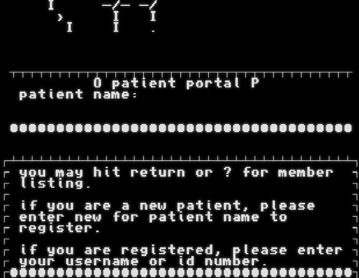 ♥▚♥▜▖▄ 8▞6▖7▀5▀3▚0\*9 █▀▏▟▀▖ 11:16 ▄▄ ─♠▃▃▟▖▃ ▗▖▜▖─▜▖▗... ▟▀▟▜▟♠▏▟♦▟▀▝ ▄♠▜▟▖▀▜ ▄█▃▜♠▏... -​------------------------------------- - ▚█╭'╳▖ ▃▖♠─▙▖▗ ▟▜─▙▚ │╭▜▜ ││♥! - -​------------------------------------- - ▄♠▜▟▖▀▜ ▄█▃▜♠▏ - - ▄▖▜♥─▟▟ ▝▃♠▄▙▟─♥ ─▙▖─▕! ▄▏▖♠♥▖ - - ▄▃▖♥♥ ▚█╭▃ ▗▖▏▖▜▖/│♠─▕♥▄♠─▖ ▕▖▚. - - - - ♥▚▀─▜▖▃▄ ╭♥▖▃♥, ╭♥▖ ♥─▃▖▖▀ ▄█▗▖ ─64- - │▖▘█▃▖ ▄▃▖♥♥▟▀▝! - -​------------------------------------- Ž commodore graphics enabled! ▀▀▀▀▀▀▀▀▀▀▀▀▀▀▀▀▀▀▀▀▀▀▀▀▀▀▀▀ ╮ ◥ ▀▀▀ ••• ••• ••• • • • • \* ◥ ╮ ◥ ╮ ◥ ╮ ◥ ◥ ╲ •• • • ••• ••• b ◥ b ◥ s ◥ ╮ ╮ ▀▀▀▀▀▀▀▀▀▀▀▀▀▀▀▀▀▀▀▀▀▀▀▀▀▀▀▀▀▀▀▀▀▀▀▀ a color 64 bbs 8.1a support center welcomes you! sysop: nuke cosysop: backintime proud member of the color 64 network westwood \* darkstar \* arrakis press a key to login ‚ ────── ((((( > ); >>>>I)I < IIIIII/ ─────────────── > /////// Itchy Butt BBS '--I ──── ─────────────── ──> <── ( " " ) > ' / I > I I -> / ) (── I / / I / / / ""/> / ",")> I ) ) I ─/─ ─/ > I I I I . Ž ┬┬┬┬┬┬┬┬┬┬┬┬┬┬┬┬┬┬┬┬┬┬┬┬┬┬┬┬┬┬┬┬┬┬┬┬┬ O patient portal P patient name: ••••••••••••••••••••••••••••••••••••• ┌┴┴┴┴┴┴┴┴┴┴┴┴┴┴┴┴┴┴┴┴┴┴┴┴┴┴┴┴┴┴┴┴┴┴┴┴┴┐ ┌ you may hit return or ? for member ┐ ┌ listing. ┐ ┌ ┐ ┌ if you are a new patient, please ┐ ┌ enter new for patient name to ┐ ┌ register. ┐ ┌ ┐ ┌ if you are registered, please enter ┐ ┌ your username or id number. ┐ ┌•••••••••••••••••••••••••••••••••••••┐