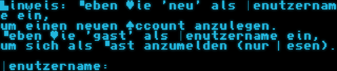 Ž ▀ ▀ ▀ ▀│ ▀┴ ▀ ▀▄ ▄│ ─ ▏• ▏• ▏├ ┴▄ ─ ▏├ ─▄ ▀┴ ▀▄ ▀▄ ▀┴ ▀┴ ──••┤┤▀▀▀▀▀▀┤┤••── █ ▏├ █▄ ▏├ █• w e l c o m e ╭▗▟ ╭▗▟ ╭▗▟ ▝!▙ ▝!▙ ▝▞└ t o ▝.└ ▝.└ ╯▟▙ ▝╱▙ ▝╱▙ ▝ ▙ ──┴┴┬┬┬┬┬┬┬┬┬┬┴┴── ▞▘▕ ▞▘▕ ▞▘▕ ▀▄ ▀▄ ▀┴ ▀┴ ▀┴ ▀▄ ▀┴ ┴█ ▀│ ▀▄ ▄│ █┴ █▄ █• ┴▄ ┴▄ █▄ █• ─ ▏├ █▄ ─▄  ▙inweis: ▝eben ♥ie 'neu' als │enutzername ein, um einen neuen ♠ccount anzulegen. ▝eben ♥ie 'gast' als │enutzername ein, um sich als ▝ast anzumelden (nur ▏esen). │enutzername: