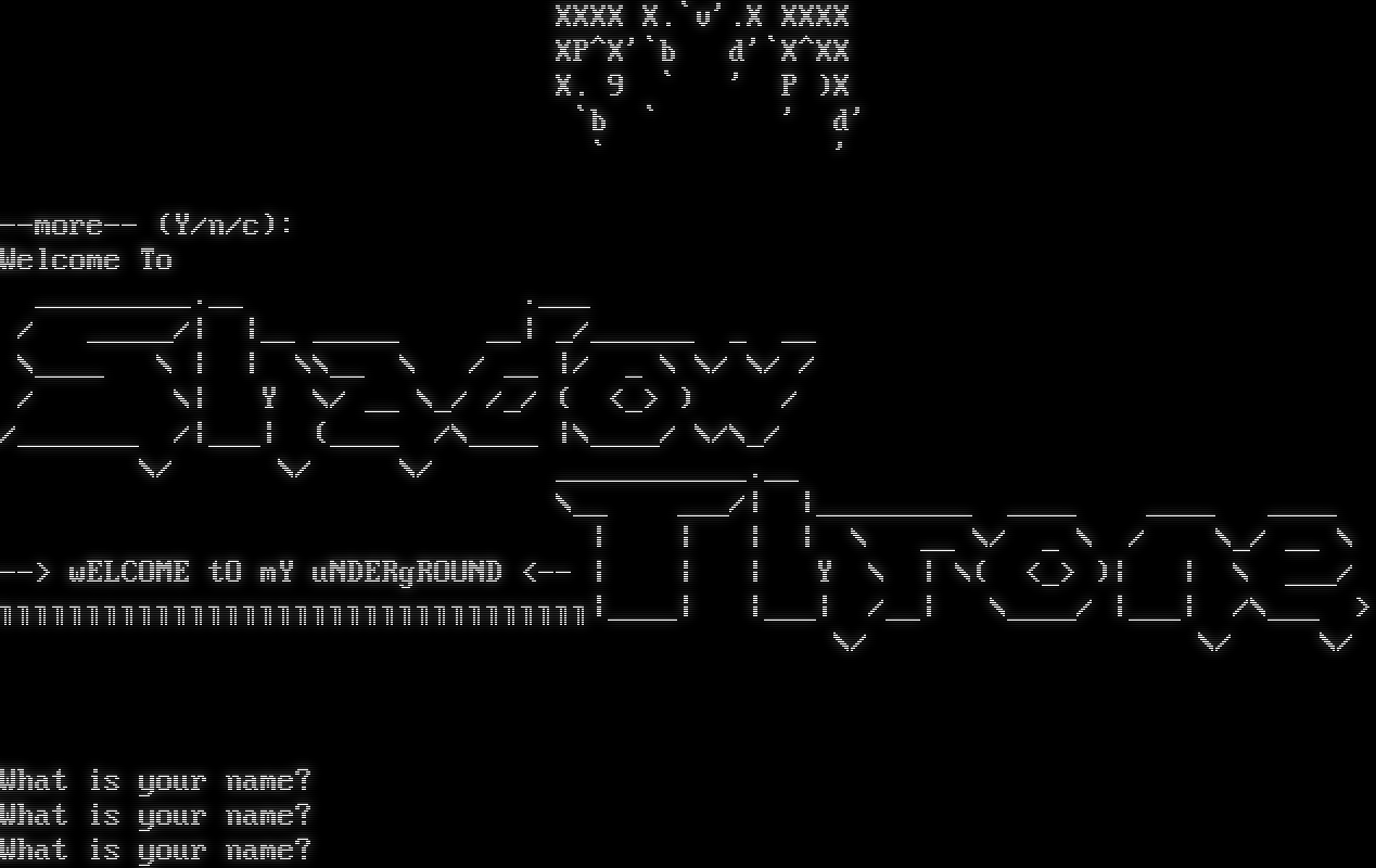 "banner_after_return": "\r                 \r                                     Welcome To\r\n  _________.__                .___\r\n /   _____/|  |__ _____     __| _/______  _  __\r\n \\____   \\ |  |  \\\\__  \\   / __ |/  _ \\ \\/ \\/ /\r\n /        \\|   Y  \\/ __ \\_/ /_/ (  <_> )     /\r\n/_______  /|___|  (____  /\\____ |\\____/ \\/\\_/\r\n        \\/      \\/     \\/       ___________.__\r\n                                \\__    ___/|  |_________  ____    ____   ____\r\n                                  |    |   |  |  \\   __ \\/  _ \\  /    \\_/ __ \\\r\n--> wELCOME tO mY uNDERgROUND <-- |    |   |   Y  \\  | \\(  <_> )|   |  \\  ___/\r\n\u2556\u2556\u2556\u2556\u2556\u2556\u2556\u2556\u2556\u2556\u2556\u2556\u2556\u2556\u2556\u2556\u2556\u2556\u2556\u2556\u2556\u2556\u2556\u2556\u2556\u2556\u2556\u2556\u2556\u2556\u2556\u2556\u2556\u2556|____|   |___|  /__|   \\____/ |___|  /\\___  >\r\n                                                \\/                   \\/     \\/\r\n\r\n\r\n\b\b\b\b\b\b\b\b\b\b\b\b\b\b\b\b\b\b\b\b\b\b\b\b\b\b\b\b\b\b\b\b\b\b\b\b\b\b\b\b\b\b\b\b\b\b\b\b\b\b\b\b\b\b\b\b\b\b\b\b\b\b\b\b\b\b\b\b\b\b\b\b\b\b\b\b\b\b\b\b\b\b\b\b\b\b\b\b\b\b\b\b\b\b\b\b\b\b\b\b\b\b\b\b\b\b\b\b\b\b\b\b\b\b\b\b\b\b\b\b\b\b\b\b\b\b\b\b\b\b\b\b\b\b\b\b\b\b\b\b\b\b\b\b\b\b\b\b\b\b\b\b\b\b\b\b\b\b\b\b\b\b\b\b\b\b\b\b\b\b\b\b\b\b\b\b\b\b\b\b\b\b\b\b\b\b\b\b\b\b\b\b\b\b\b\b\b\b\b\b\b\b\b\b\b\b\b\b\b\b\b\b\b\b\b\b\b\b\b\b\b\b\b\b\b\b\b\b\b\b\b\b\b\b\b\b\b\b\b\b\b\b\b\b\b\b\b\b\b\b\b\b\b\b\b\r\n**EMSI_IRQ8E08\r**EMSI_REQA77E\rWhat is your name? \r\n**EMSI_IRQ8E08\r**EMSI_REQA77E\rWhat is your name? \r\n**EMSI_IRQ8E08\r**EMSI_REQA77E\rWhat is your name? ",