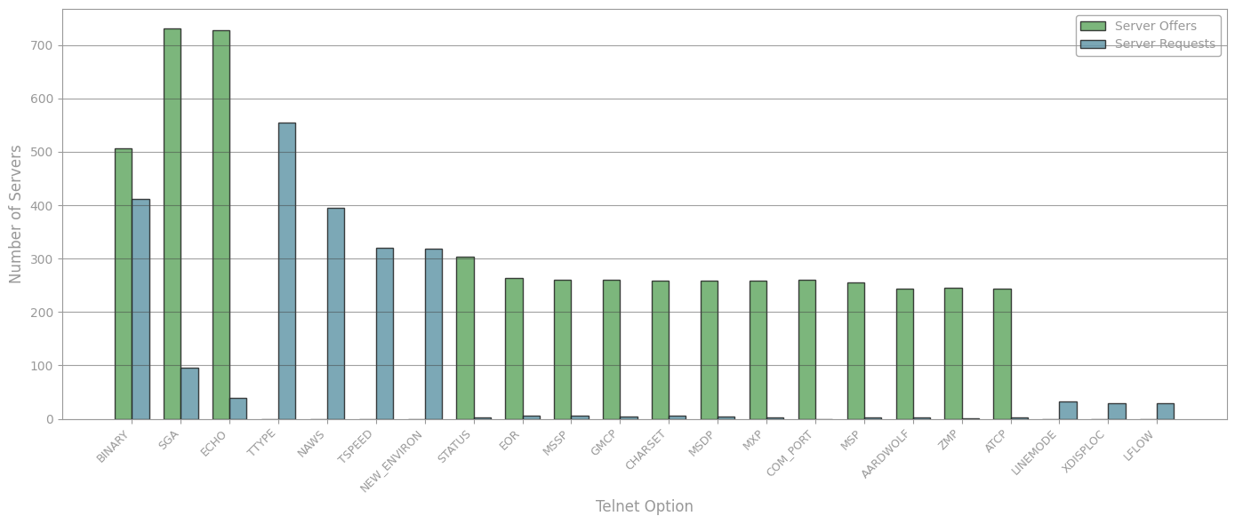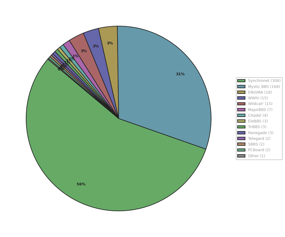 These statistics reflect the most recent scan of all servers in the bbslist.txt input list. Each server is probed using telnetlib3, which connects to each address, performs Telnet option negotiation, and captures the login banner.